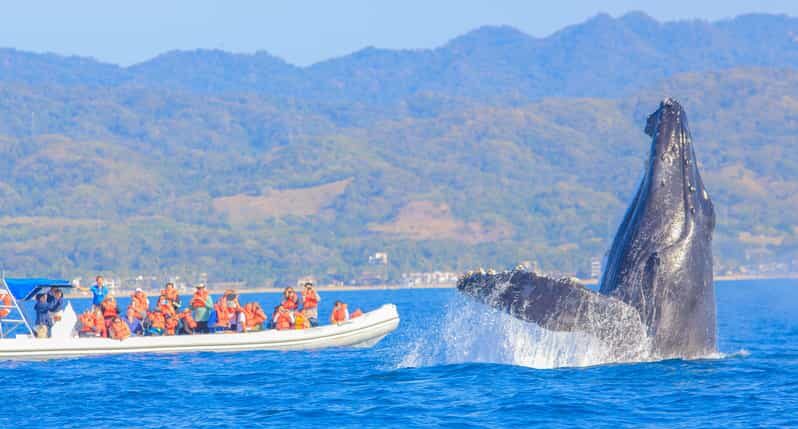 From December to March, spot humpback whales in Banderas Bay. Year-round options include sailing, dolphin tours, or sunset cruises.