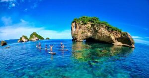 Snorkel or dive around dramatic rock formations and arches teeming with marine life. Many tours include stops for swimming and views of the bay.
