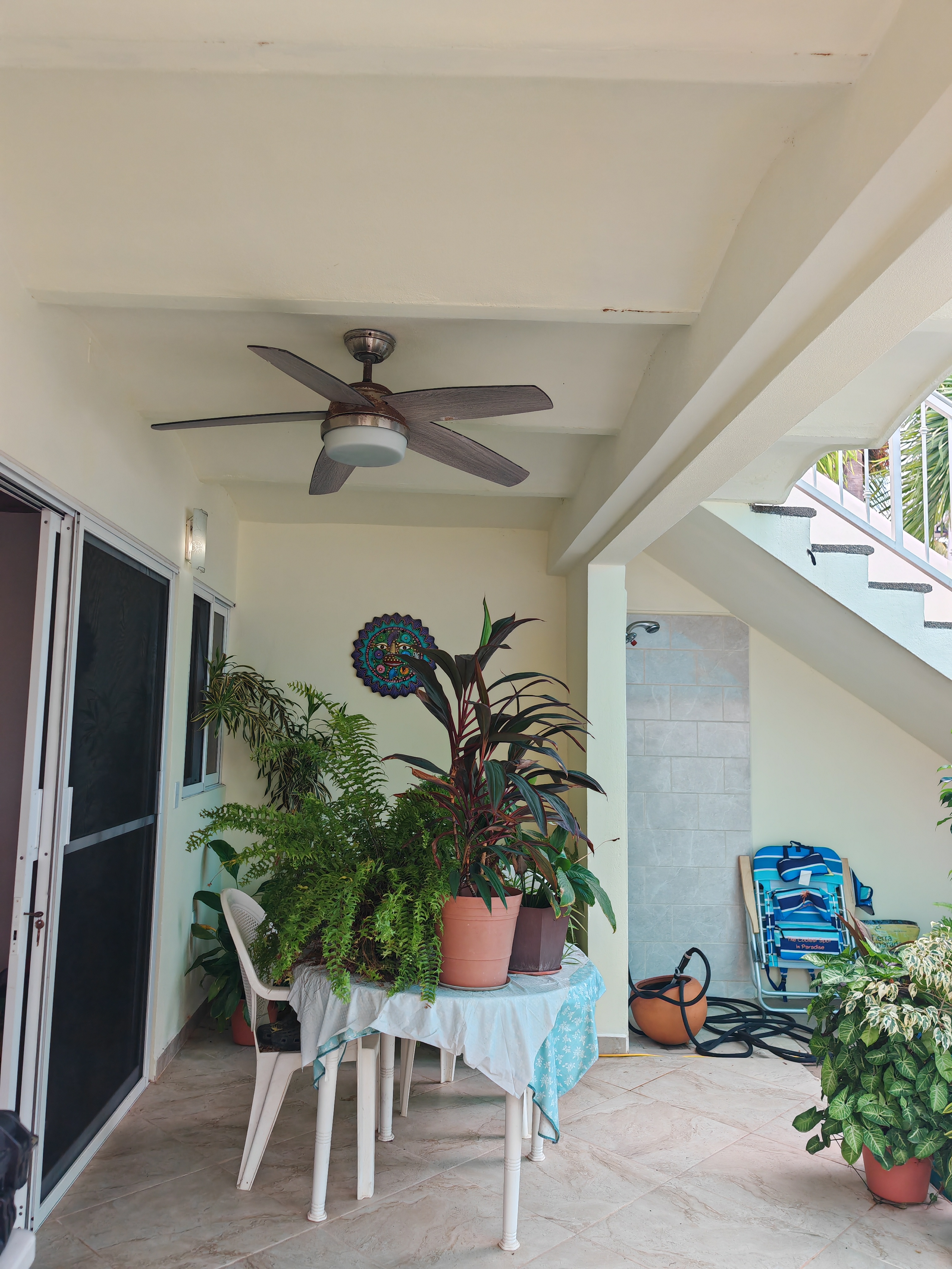 A 2-story house on 154 meters of land, the downstairs has private parking, a nice patio with a newly installed outdoor shower, and a newly remodeled Full Studio Unit that is light and bright. Air Conditioning is on both floors of the house.